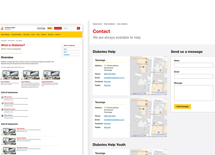 Diabetes Help provides information about living with and avoiding diabetes and needed a website that had clear navigation and information around educating people with diabetes. By designing with high contrast colours we were able to keep a focus on accessibility.