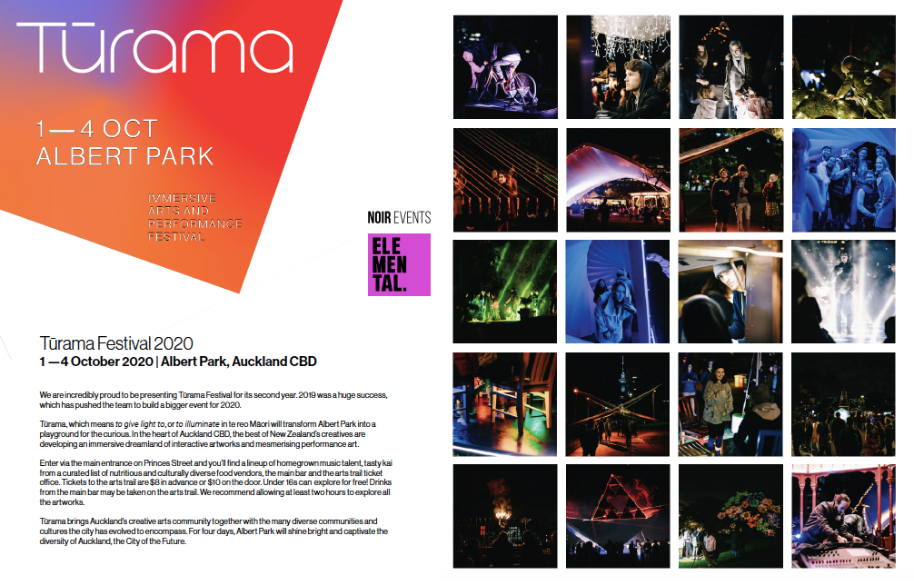 Taking over Albert Park from 1st - 4th October 2020, the festival will be the opening event for Elemental AKL; a month-long series of activations run by ATEED to increase foot traffic in the city. The festival is aiming to attract 60,000 people over four days.